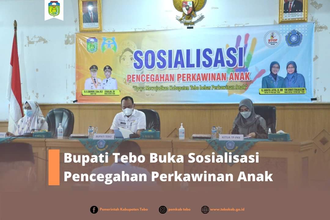 Metro independen – Bupati Tebo Dr. H. Sukandar, S. Kom. M. Si. membuka Sosialisasi Pencegahan Perkawinan Anak di Aula Melati Sekretariat Daerah Kabupaten Tebo, Rabu (24/03/2021).